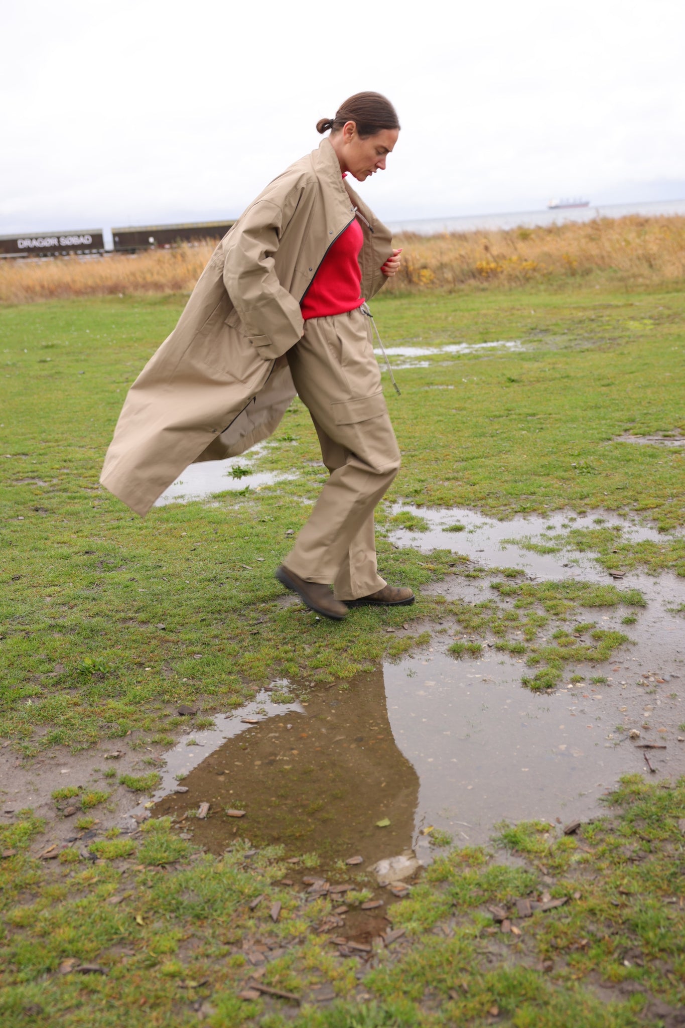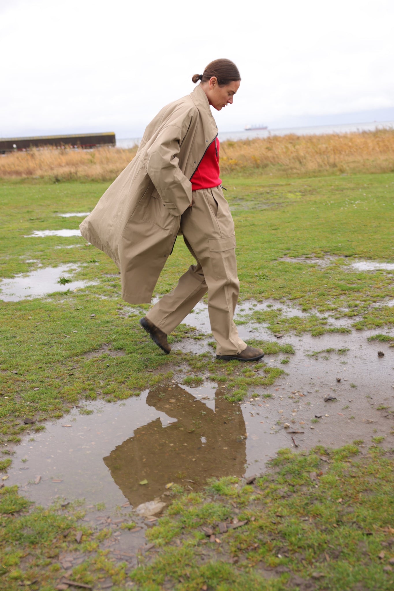 Super cool cargo-workwear-bukser i Rethinkit’s tekniske udendørs kategori. Bukserne har skrå lommer ved taljen og påsatte lommer med lommeklap ned ad siden. Taljen er justerbar, og det samme gælder ved anklen. Alle indvendige sømme er pænt dækket med et stribet økologisk bomuldsstof.