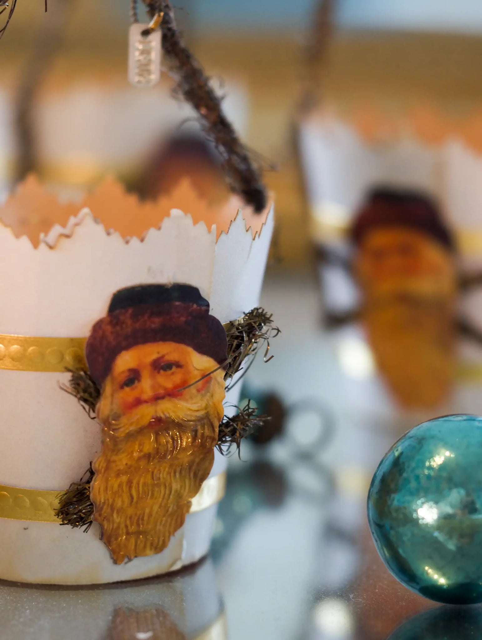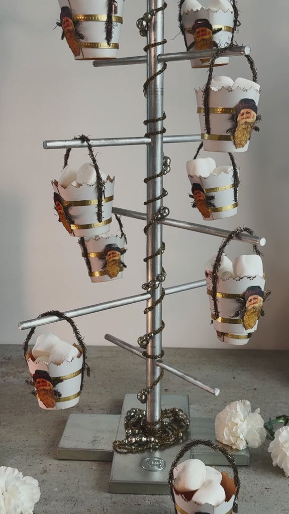 Kanten er afsluttet med en dekorativ udskæring, og glimmertråden rundt om siderne – samt som hank – giver et smukt, vintage-inspireret skær. Brug den til små godter eller som pynt i årets juleopstillinger.