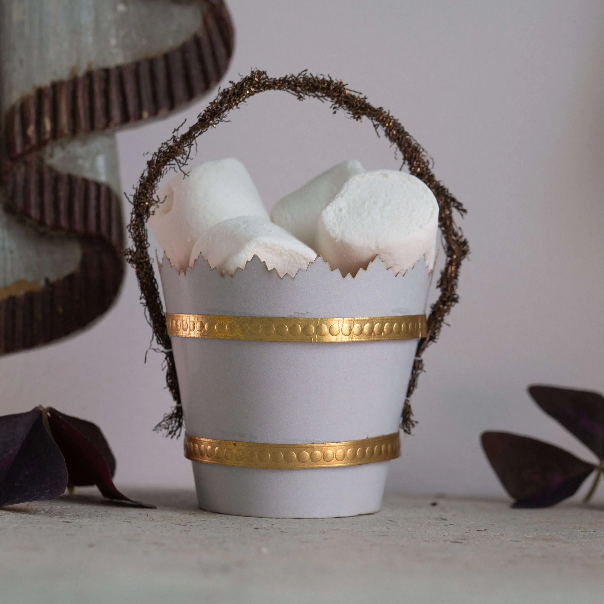En charmerende papirkurv inspireret af en original slikbeholder fra begyndelsen af 1900-tallet. Papiret er håndfarvet i den fine, lyseblå tone, som kendes fra det historiske forlæg, og giver ornamentet et autentisk, nostalgisk udtryk.