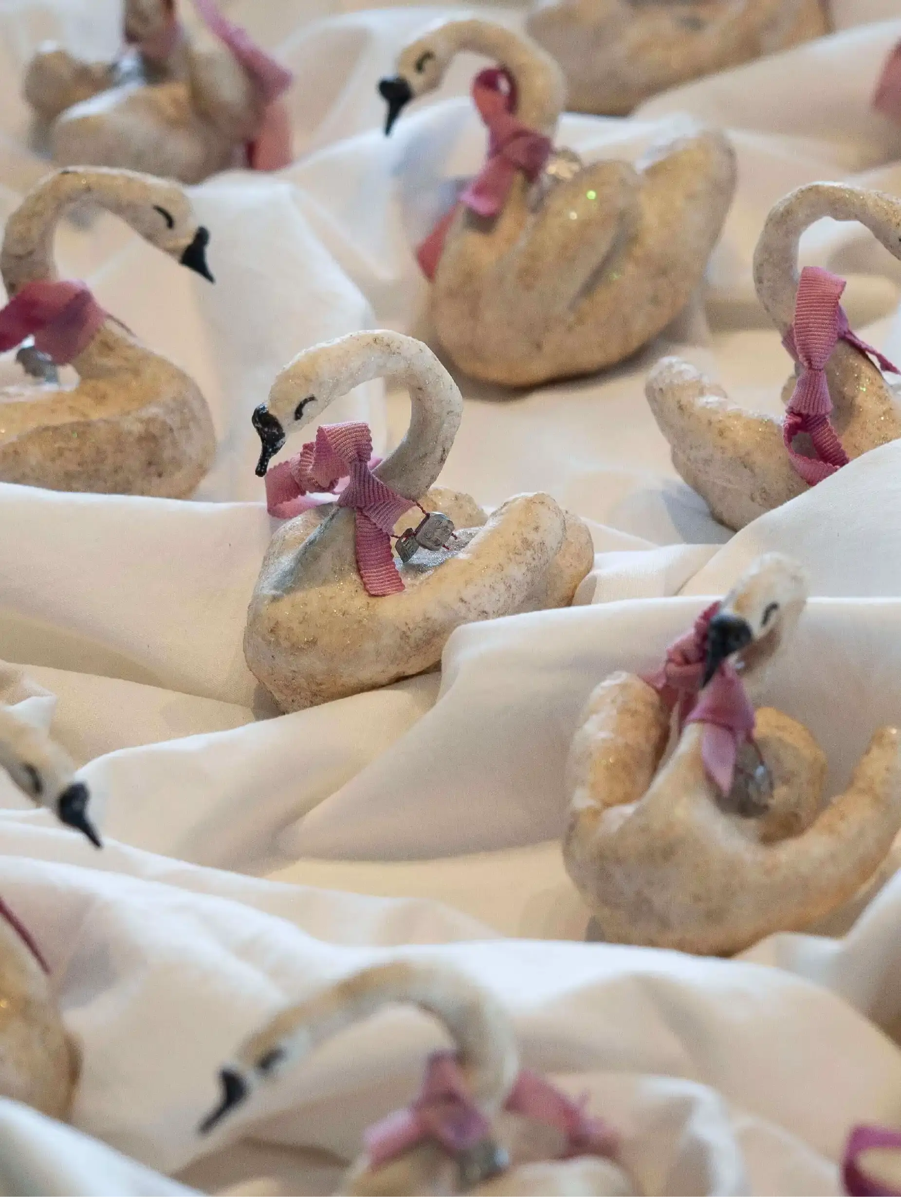 En elegant, håndlavet svane inspireret af originale juleornamenter fra omkring 1910. Hver svane er skabt i bomuld og papir og genskabt med stor omhu som en hyldest til de klassiske juledekorationer fra tidligere tider.