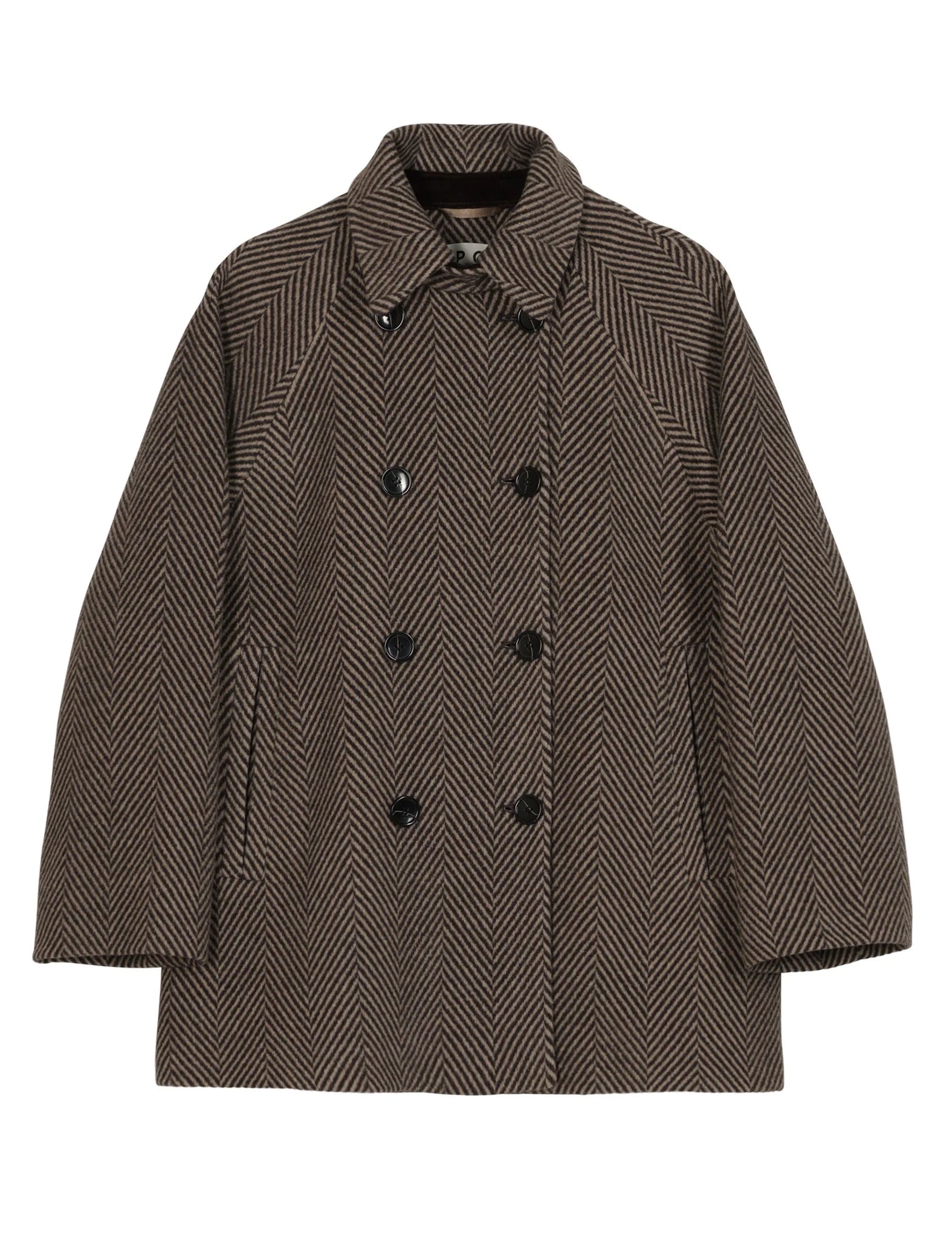 Drew Jakken er et raffineret ydertøjsmust-have med en struktureret herringbone vævning og tidløse skræddersyede detaljer. Den rummelige pasform og dobbeltknaplukningen henter inspiraton fra klassisk herremode, mens den brede krave og de skrå lommer tilføjer et feminint præg.