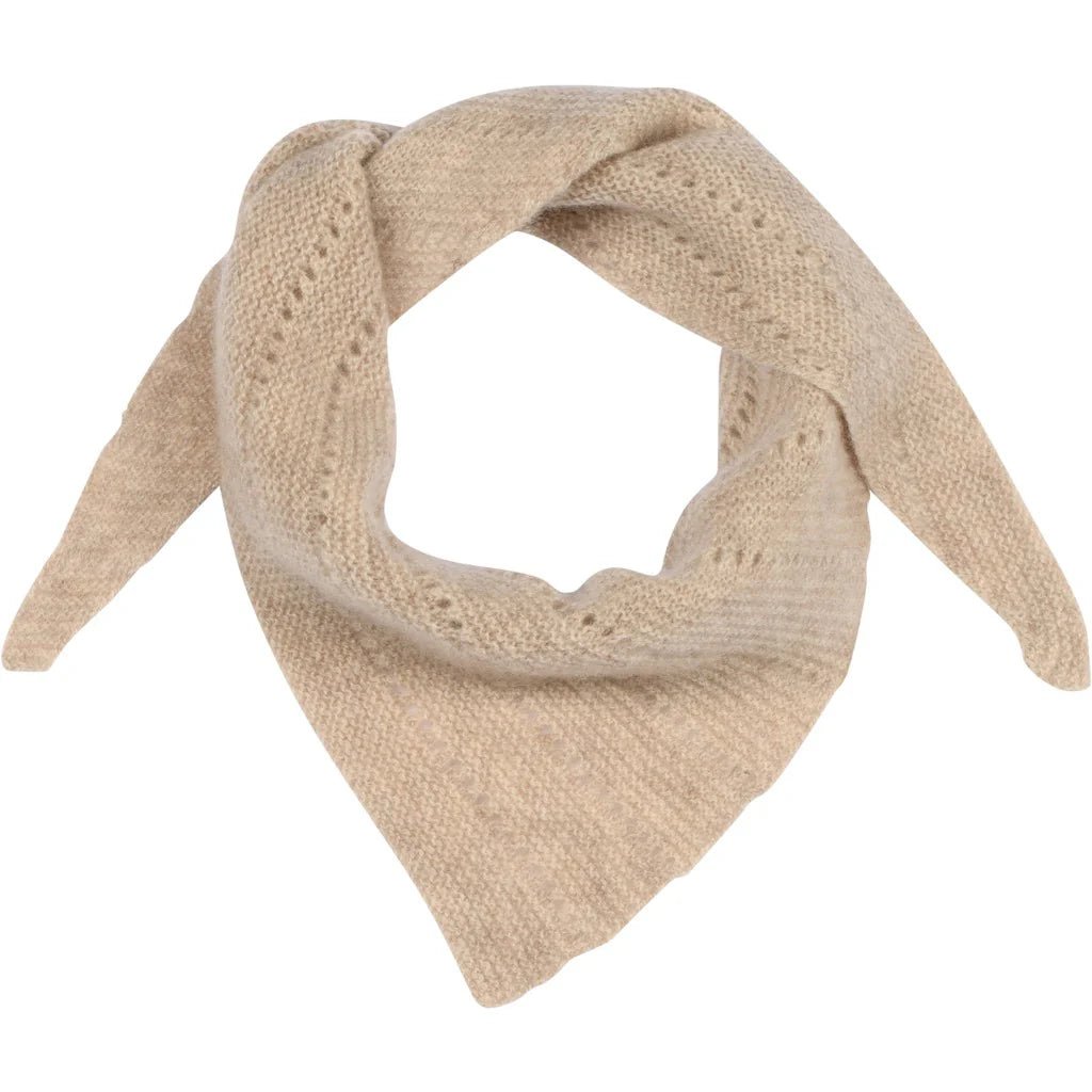 Dejlig blødt tørklæde i 100% cashmere, der har et feminint hulmønster på tværs af den trekantformede silhuet.