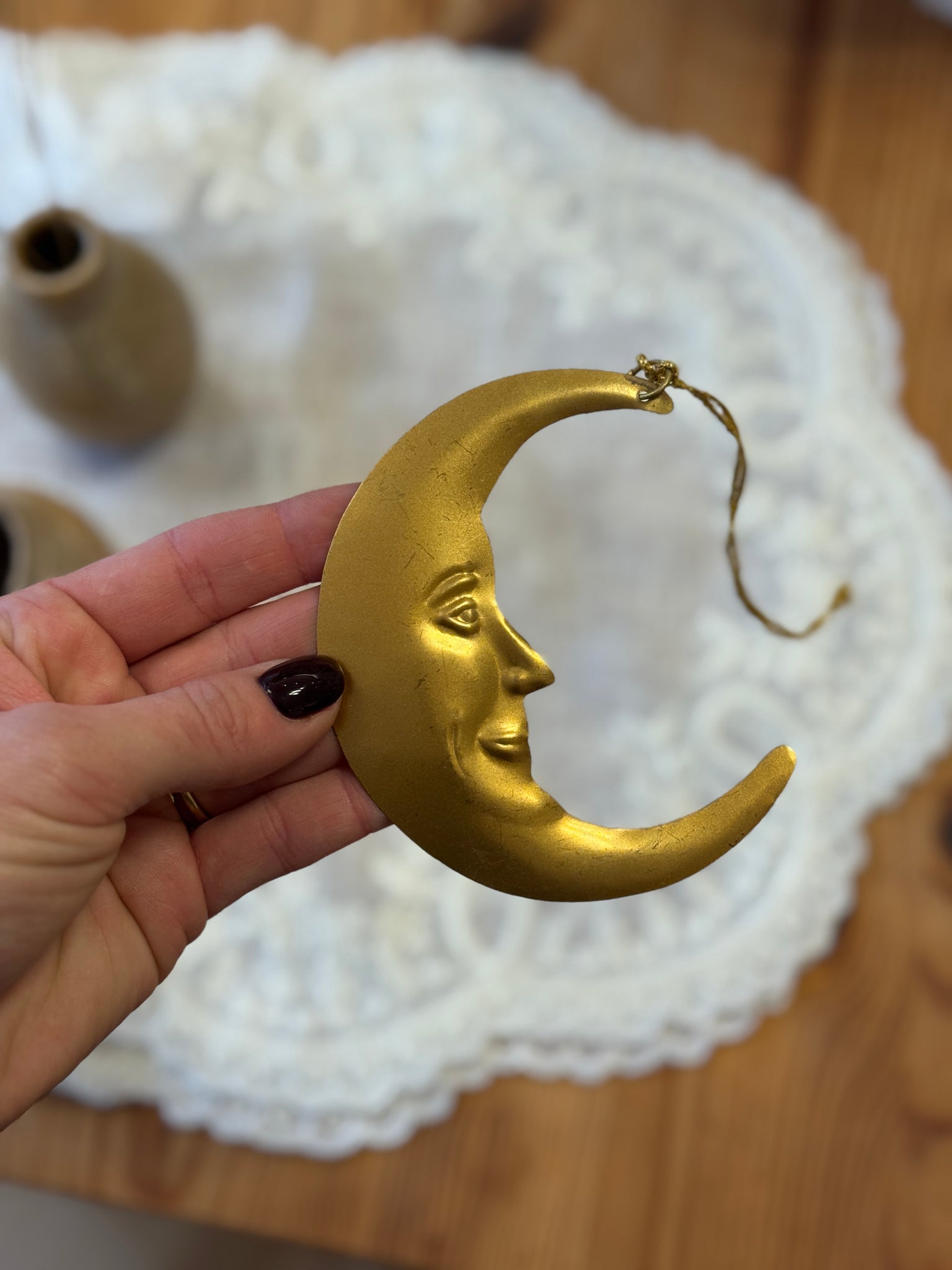 Fin og dekorativ måne til ophæng.