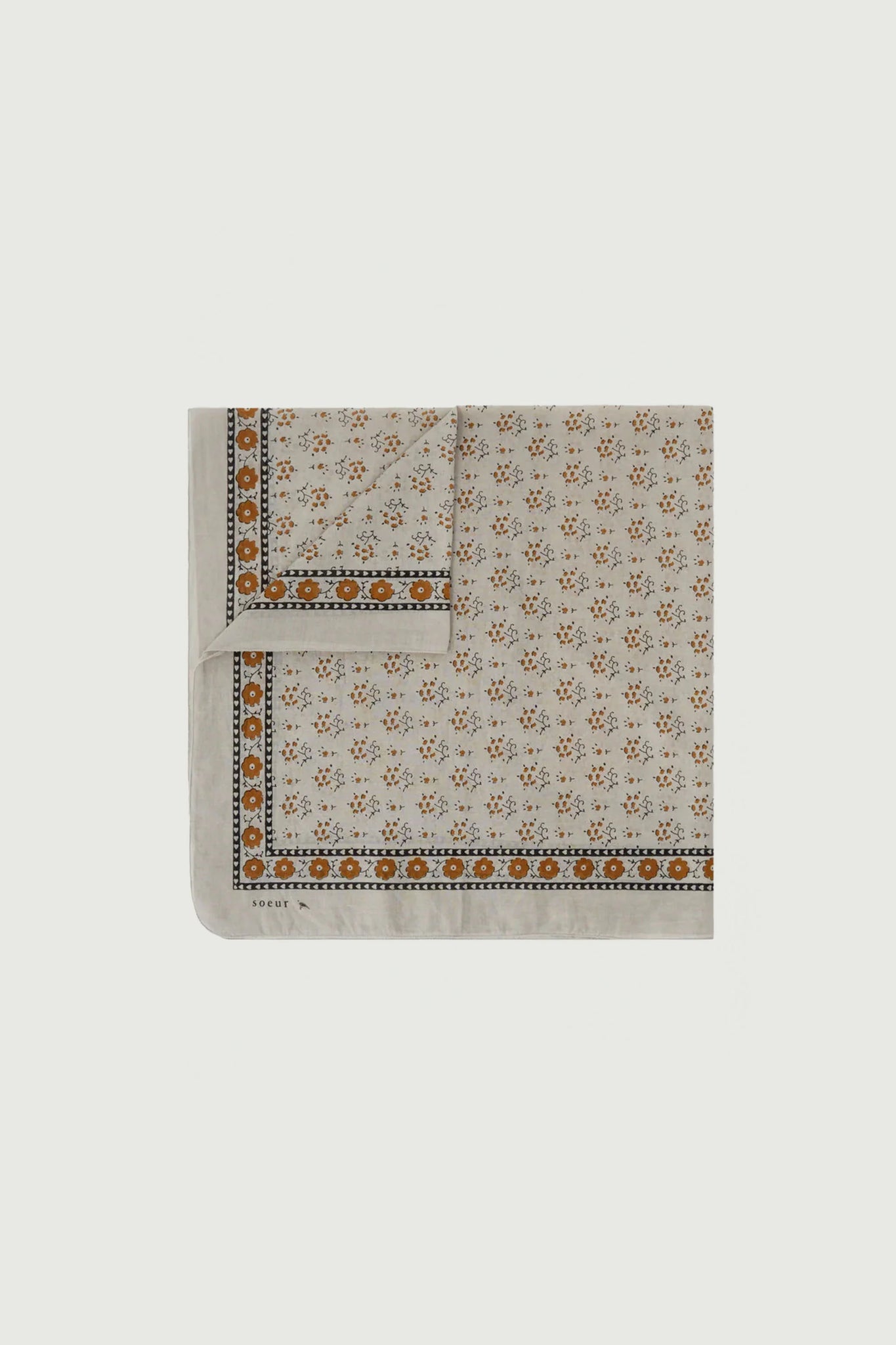 Dette kvadratiske tørklæde fra Soeur er udført i 100 % silke og har et smukt, dekorativt mønster i afdæmpede nuancer. Det lette silkestof falder elegant og kan styles både klassisk om halsen, løst over skuldrene eller som et personligt touch til jakke eller taske.