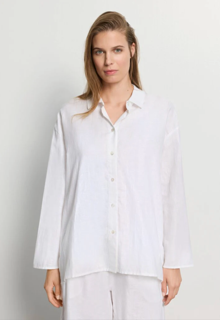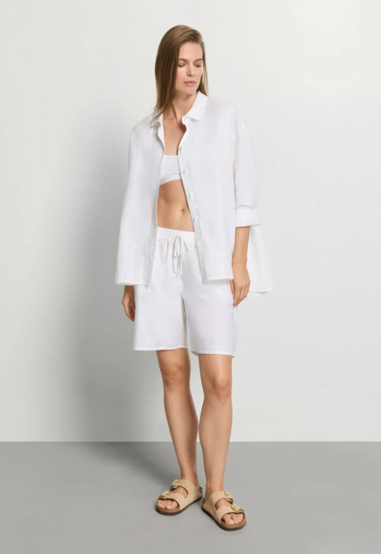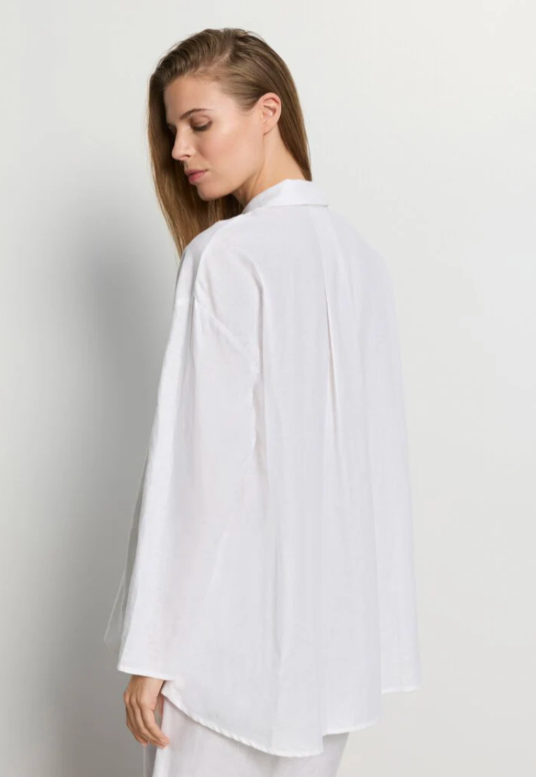Lækker klassisk skjorte fra Hanro, der er skabt til en let og stilren sommergarderobe. Modellen har gennemgående knaplukning og en let forlænget ryg, som giver et afslappet og elegant udtryk. De fine læg bagpå tilfører både bevægelsesfrihed og en smuk, levende silhuet, så skjorten falder naturligt om kroppen.