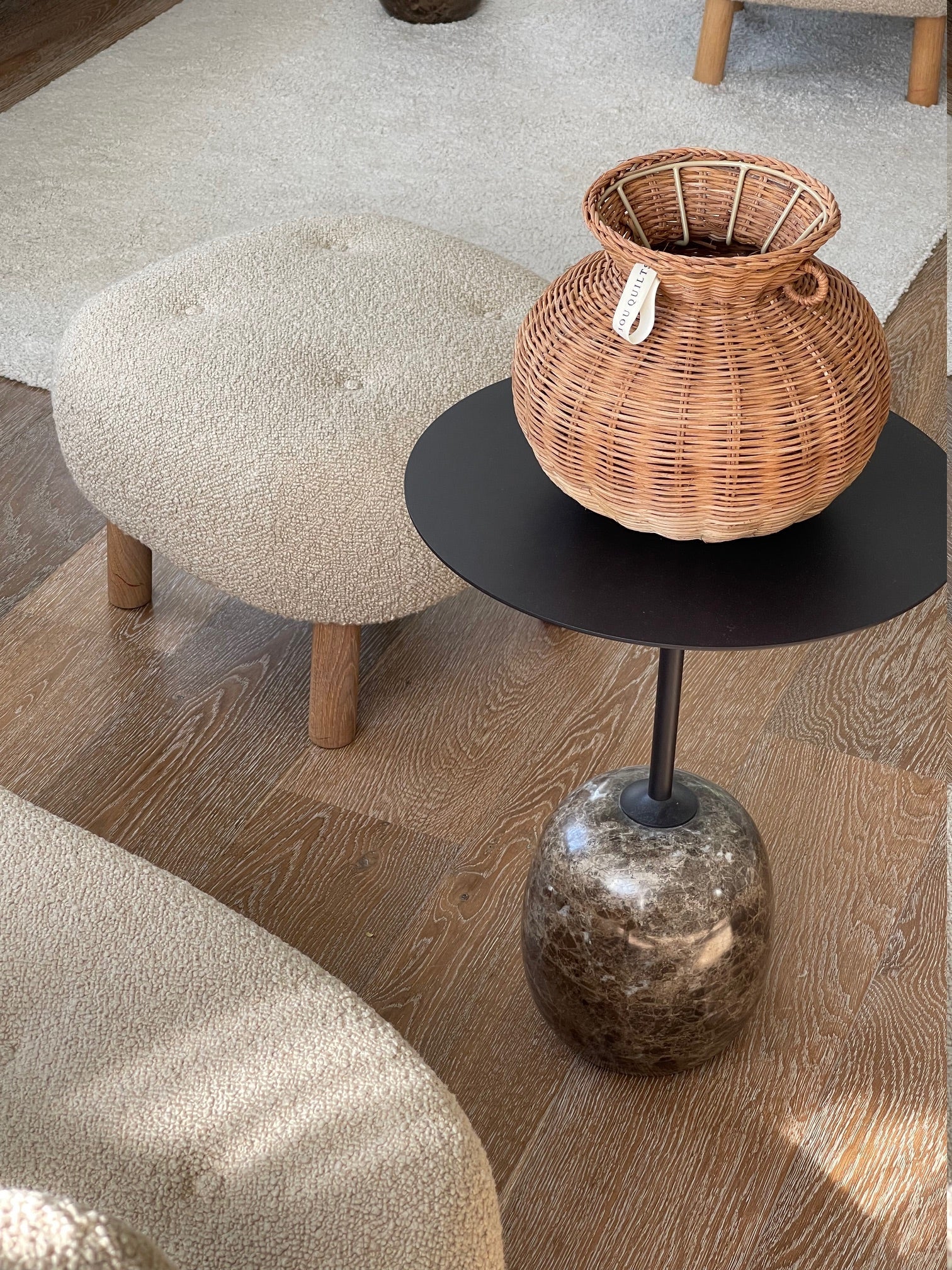 Denne smukke vase er håndflettet i Vietnam i det naturlige og slidstærke materiale - rattan.