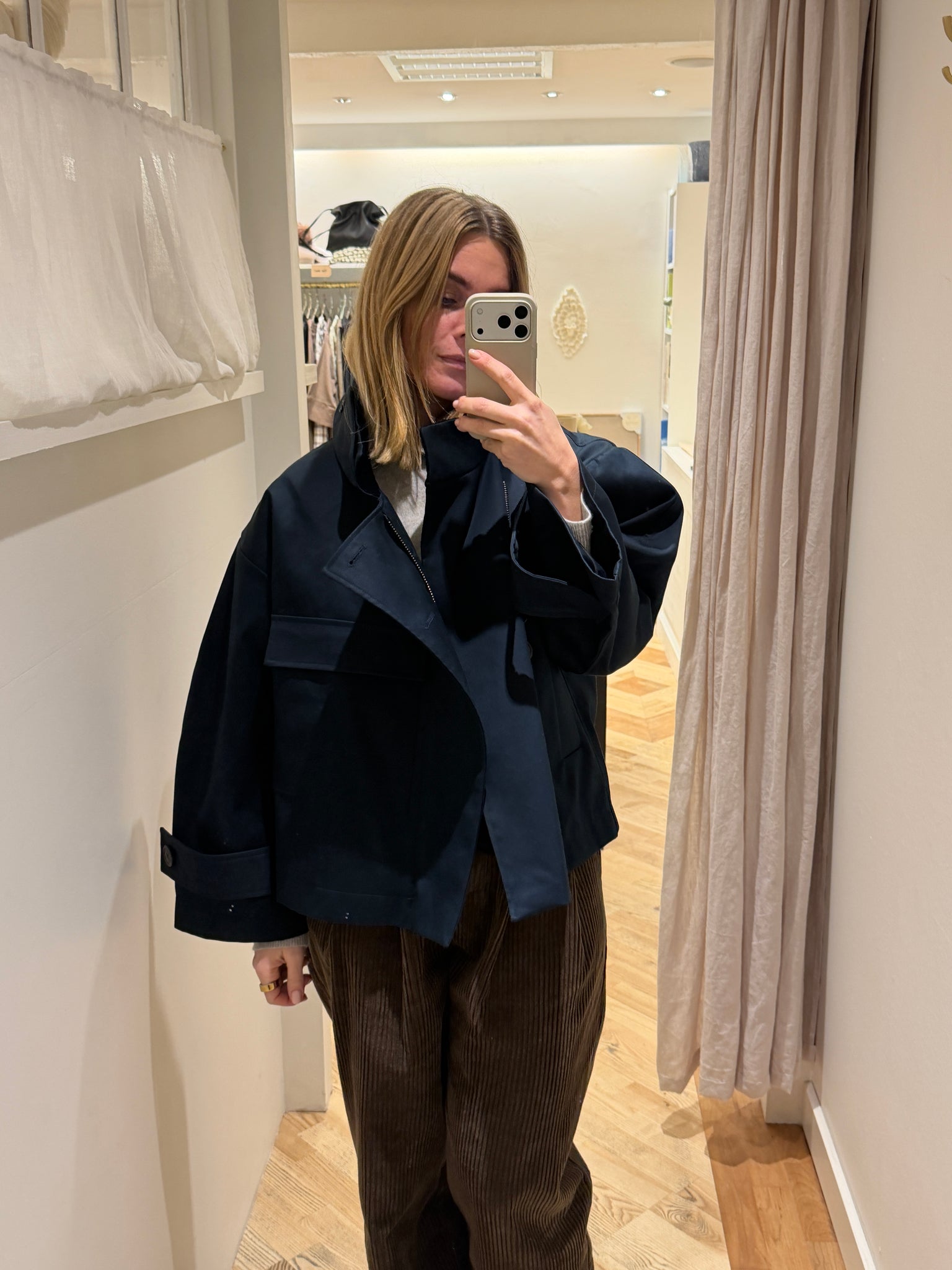 Den korte jakke fra AF Agger er en skarp og anvendelig version af den klassiske trench. Kortere i længden, men med samme gennemarbejdede udtryk og funktionelle kvalitet. En jakke, der fungerer i hverdagen og holder stilen enkel og rolig.